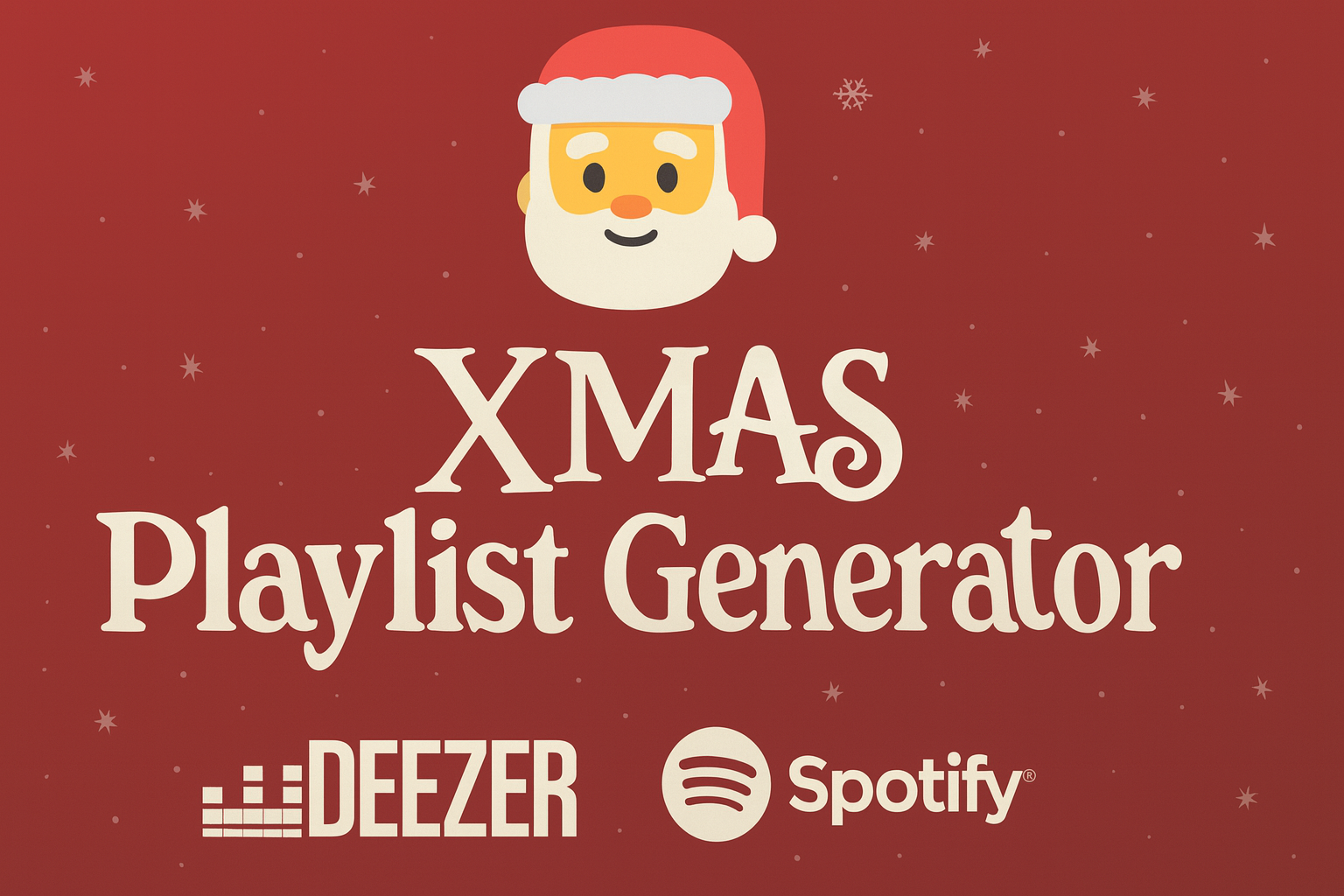 Le site propose des playlists basĂ©es sur les API Spotify et Deezer. Christmas Playlist Generator nâest pas affiliĂ© Ă ces services et ne peut ĂȘtre tenu responsable dâune indisponibilitĂ© ou modification de leurs API.